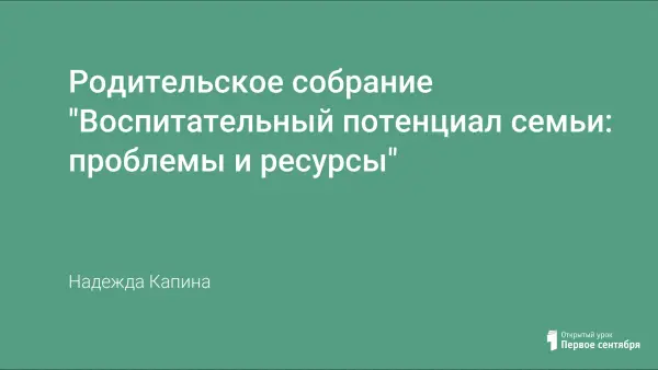 Семейное воспитание – это воздействие на детей со стороны родителей и других членов семьи с целью достижения желаемых результатов. Задачи собрания: выявить потенциальные возможности семьи в воспитании детей, способствовать формированию адекватной, гибкой и прогностичной родительской позиции и установки.