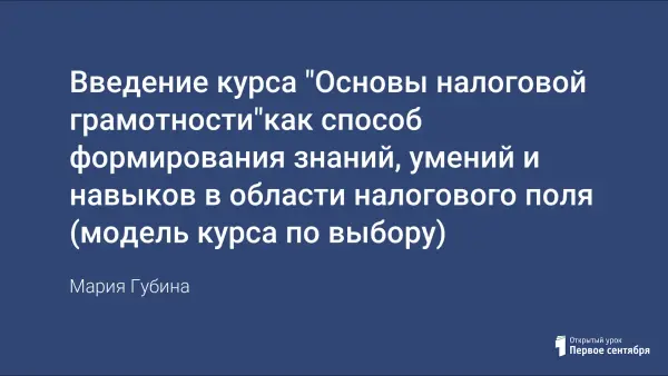 Введение курса по выбору «Основы налоговой грамотности» в 9 классе обеспечивает учащихся достаточным минимумом знаний в налоговом поле, решает задачу адаптации в быстро меняющихся экономических условиях, готовит участников рыночной экономике.