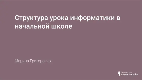 Многие преподаватели информатики работают в школе с 3-го по 11-й класс включительно, и не секрет, что перестроиться в ходе дня бывает затруднительно. В работе рассматривается структура урока, которая позволит построить урок с учетом психофизиологических особенностей младших школьников. Там же предложено примерное планирование пропедевтического курса информатики.