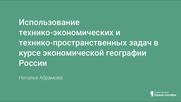 Технико-пространственные задачи это один из способов сделать интересными уроки экономической географии России, обеспечив при этом высокое качество усвоения материала.