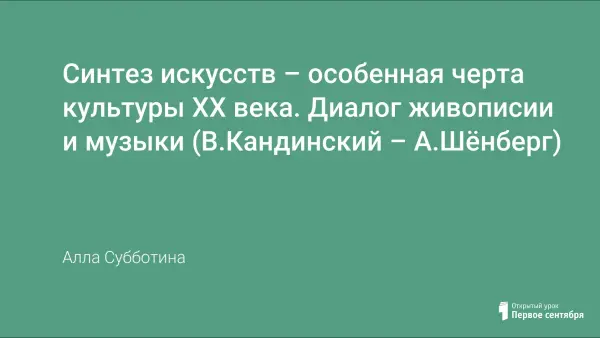 Синтез искусств – особенная черта культуры ХХ века. Диалог живописии и музыки (В.Кандинский – А.Шёнберг)
