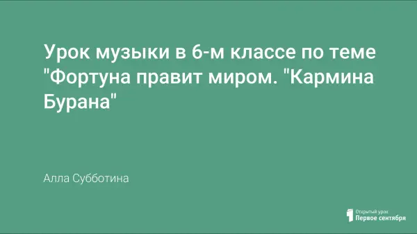 Цель и задачи урока: формировать представление о стилевом многообразии музыки XX века; учить различать простые и сложные жанры музыки на примере сценической кантаты К.Орфа "Кармина Бурана"; развивать способность анализировать приемы взаимодействия и развития образов сценической кантаты "Кармина Бурана"; развивать навыки напевания мелодий классического репертуара.