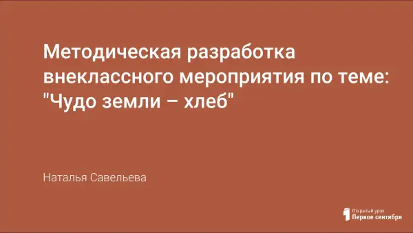 "Чудо земли – хлеб" для учащихся начальных классов. Цель: воспитание бережного отношения учащихся к хлебу.