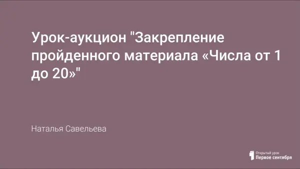 Представлена разработка урока математики в 1-м классе на закрепление пройденного материала в рамках традиционной программы. Урок составлен в форме аукциона. Он направлен на развитие самостоятельности, логического мышления, памяти, воображения, закрепляет умение решать задачи в два действия.