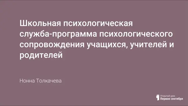 Школьная психологическая служба является активным звеном педагогического процесса школы. Её деятельность направлена на реализацию образовательной программы школы как целостной системы мер по гуманизации, дифференциации, индивидуализации обучения и воспитания в школе, учитывающей потребности обучаемых, их родителей, педагогов и социума.