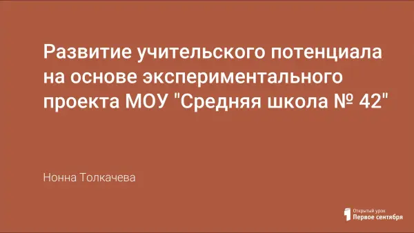 Инновационная деятельность, в которую включается учитель, может стать мощным фактором его личностно-профессионального саморазвития. В статье описан опыт МОУ «Средняя школа № 42» г. Петропавловска-Камчатского по развитию учительского потенциала на основе экспериментального проекта школы.