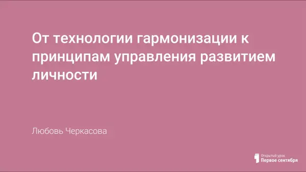 10 лет МОУ "Средняя школа №42" г. Петропавловска-Камчатского работает в условиях Федеральной экспериментальной площадки, реализуя экспериментальный проект по теме "Развитие ребёнка в условиях педагогического процесса школы – центра гармонизации личности". Для реализации данного проекта была разработана технология гармонизации личности, которая описана в данной статье.