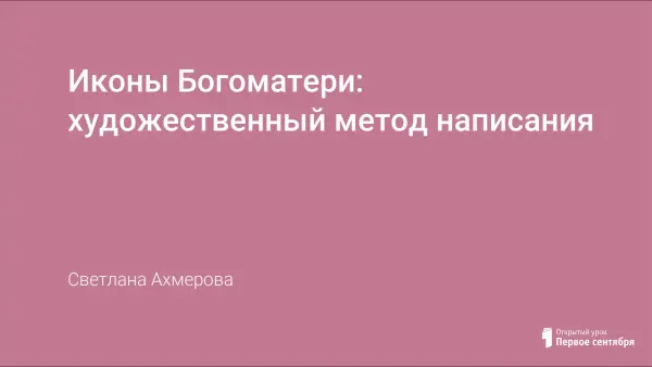 Тема: "Иконы Богоматери: художественный метод написания" предназначена для учащихся старших классов, так как они лучше подготовлены для восприятия данного материала, имеют достаточный багаж знаний по истории, ИЗО, литературе. Использование межпредметных связей помогает ученикам лучше постигать глубину духовного наследия русской культуры. Урок проходит в форме мастерской. Класс делится на 3 группы по 6 - 7 человек. У каждого своя роль. Разговор о русских иконах не только познавателен, но и имеет богатое воспитательное значение.