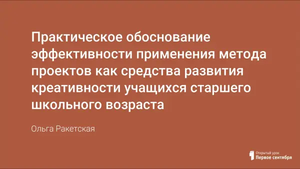 В статье описывается эксперимент, основной целью которого является практическое обоснование эффективности применения метода проектов как средства развития креативности учащихся старшего школьного возраста, приводятся статистические данные, выводы.