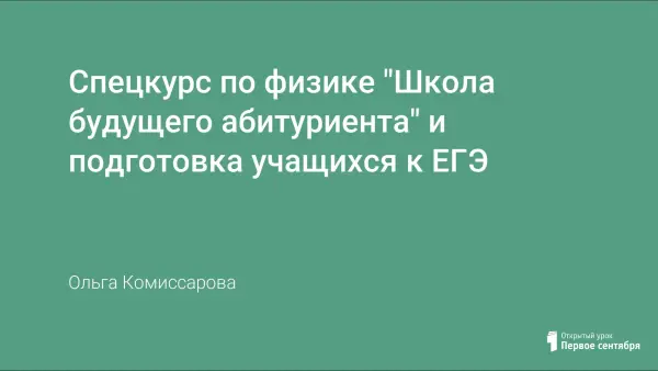 В данной методической разработке представлены цели и содержание программы спецкурса "Школа будущего абитуриента". Даны методические рекомендации по организации и методике проведения занятий. Представлен календарный план занятий для слушателей спецкурса. Спецкурс позволяет подготовить учащихся к успешной сдаче экзамена по физике в форме ЕГЭ.