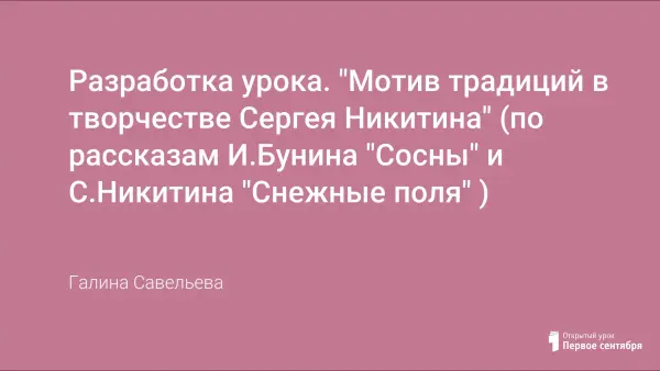 Материал предлагаемого урока строится на сопоставлении рассказов И.Бунина "Сосны" и С.Никитина "Снежные поля" с целью показать традиции и художественное своеобразие названных произведений.