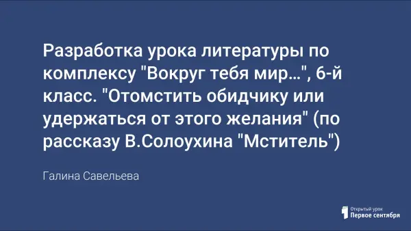 Урок литературы, позволяющий проследить, какие чувства овладевают обиженным человеком, от чего зависит окончательное решение: мстить или отказаться от мести? В предлагаемом уроке используются ИКТ, составление киносценария, который развивает зрительное воображение ученика. В приложение к уроку даны слайды.