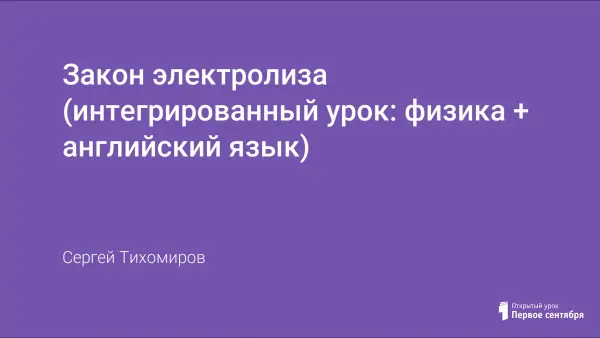 Данный урок направлен на формирование знаний и умений учащихся по восприятию научной лексики на английском языке, умение работать с научной и технической терминологией со словарём и без него, формирование знаний и умений учащихся по использованию закона электролиза на основе дифференцированного подхода к их образовательному уровню.