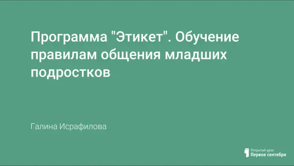 Обучение младших подростков 5–6-х классов правилам этикетного общения в различных общественных местах через ролевые игры, дискуссии и тренинговые упражнения, конкурсы, викторины, тесты, беседы, мини-сочинения.