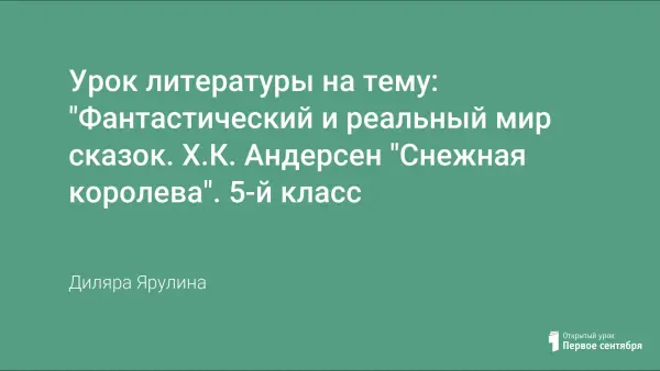 Обобщающий урок литературы в пятом классе по творчеству Х.К. Андерсена. Углубление изученного по сказке "Снежная королева". Урок имеет большое воспитательное значение.