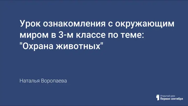Урок ознакомления с окружающим миром в 3-м классе по теме "Охрана животных"