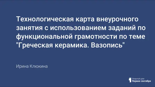 Цель урока: познакомить обучающихся с искусством древнегреческой керамики и видами росписи, развивать способности обучающихся применять приобретенные знания, умения и навыки для решения задач в различных сферах жизнедеятельности.
