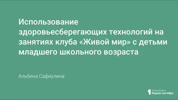 В статье приводятся примеры использования здоровьесберегающих технологий на занятиях с детьми младшего школьного возраста в клубе «Живой мир».