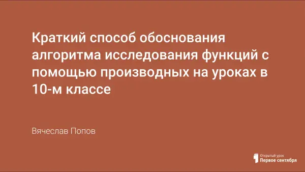 Предлагается новый способ обоснования теоретической основы применений производных к исследованию функций. В нем роль формулы Лагранжа выполняет Принцип Охвата Скоростей (коротко, ПОС), который можно доказать коротко и просто, без применения (как в традиционном способе) теорем Вейерштрасса, Ферма, Ролля, что обеспечивает экономию времени даже при полном изложении. Предназначен для математических классов.