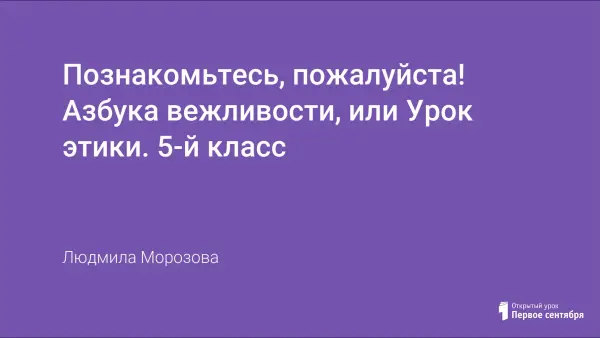 Здесь представлен материал для проведения классного часа в 5-м классе, в основе которого лежит знание правил этической грамматики. Главная цель мероприятия - воспитание у учащихся культуры знакомства, подведение итогов знаний учащимися правил знакомства. Чтобы не было скучно во время мероприятия, были составлены рифмованные тексты на мелодии детских песенок. Материал можно использовать и на уроках этики в начальных классах.