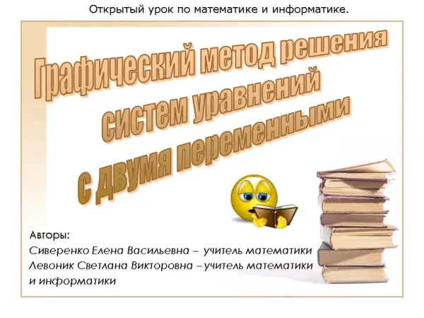 На уроке учащиеся решают стандартные математические задачи нестандартным способом – применяя информационные технологии. Учащиеся обобщают знания по графическому способу решения систем уравнений. Также у них формируются умения графически решать системы уравнений второй степени, привлекая известные им графики.