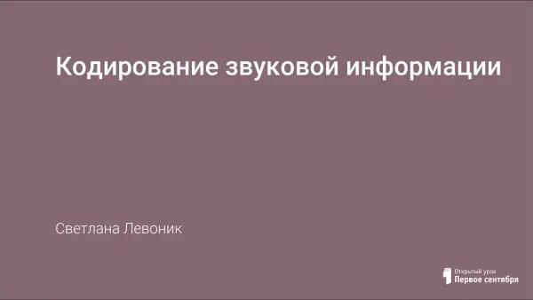 Урок по теме «Кодирование звуковой информации» разработан на основе электронных образовательных ресурсов нового поколения, размещенных в открытом доступе на сайтах http://school-collection.edu.ru, http://www.fcior.edu.ru.