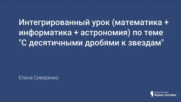 Интегрированный урок математики и астрономии по теме «Десятичные дроби» с применением на уроке программ Microsoft Office PowerPoint, проводится в 5-х или в 6-х классах. Ценность урока заключается в том, что учащиеся решают нестандартные математические задачи и видят применение своих знаний в науке (астрономия). Тем самым достигаем мотивационная цель – побуждение интереса к изучению предметов.