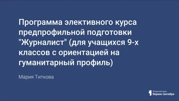 Элективный курс "Журналист" направлен на формирование поисковой и