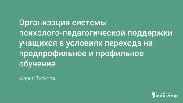 В статье предложена система психолого-педагогической поддержки учащихся в условиях перехода на предпрофильное и профильное обучение, целью которой является координация усилий администрации школы, учителей, учащихся и родителей для предотвращения и решения проблем, связанных с выбором образовательного и профессионального маршрута и самоопределением. Рассмотрены следующие вопросы: нормативно-правовая база, цели и задачи системы, основные компоненты и критерии результативности работы.