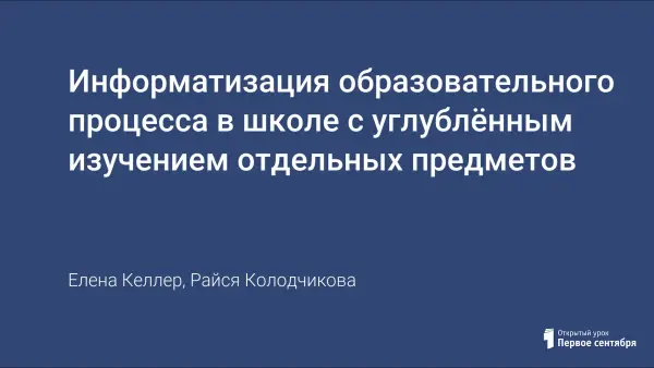 Информатизация образовательного процесса в школе с углублённым изучением отдельных предметов