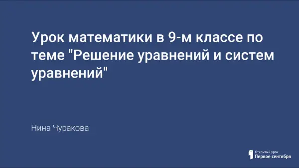Урок направлен на повторение и обобщение знаний, методов решения квадратных уравнений и уравнений, сводящихся к ним, систем уравнений. При проведении урока используется презентация, выполненная с применением компьютера.