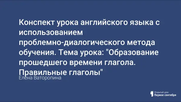 Цели урока: активизировать лексику по теме "Как я провел лето"; познакомить учащихся с правилом образования правильных глаголов в прошедшем времени (Past Simple Tense); применить знания в стандартных и нестандартных ситуациях.