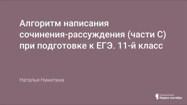 В статье представлен алгоритм написания сочинения-рассуждения (части С) при подготовке к ЕГЭ по русскому языку в 11-м классе. Даны советы и шаблоны по написанию сочинения-рассуждения, описано, чего не должно быть в сочинении.