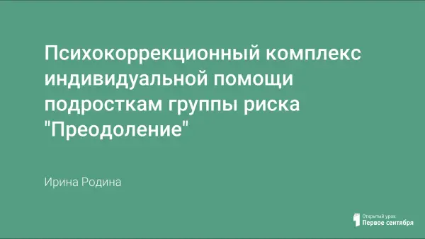 Индивидуальная психокоррекция обеспечивает конфиденциальность, тайну и по своему результату бывает более глубокой, чем групповая, что является наиболее эффективным методом воздействия на сознание подростка, которому необходима помощь взрослого, которому он доверяет.