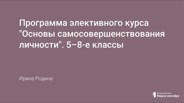 В основу элективного курса легла идея программы Г.К. Селевко. Курс представляет собой сквозной предмет, начало которого предусмотрено вводить с 5-го класса, продолжать в течение четырех лет с учетом изменений возрастных особенностей школьников. Представлен один из уроков курса «Познай себя» для 5-го класса. Цель: знакомство с понятием «темперамент», определение собственного типа нервной системы, активизация рефлексии.