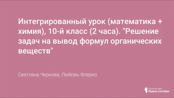 Интегрированный урок (математика + химия), 10-й класс (2 часа). "Решение задач на вывод формул органических веществ"