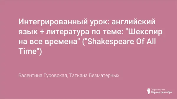 Интегрированный урок: английский язык + литература по теме: "Шекспир на все времена" ("Shakespeare Of All Time")