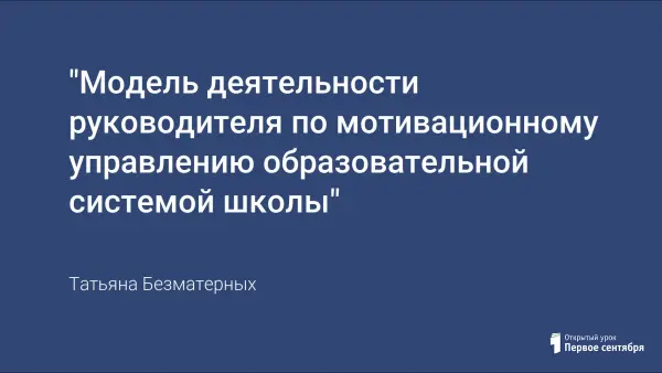 Модель деятельности руководителя по мотивационному управлению образовательной системой, которая позволяет сделать реальные шаги к обновлению содержания обучения.