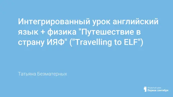 Интегрированный урок английский язык + физика "Travelling to ELF" ("Путешествие в страну ИЯФ") помогает повысить качество образования путем взаимопроникновения и интеграции отдельных частей учебного процесса в единое целое. Это экспериментальный поиск таких форм и методов организации учебной деятельности учащихся, которые позволяют обеспечить их максимальную эффективность, способствуют интеллектуальному развитию, расширению лингвистического, естественно-научного и общего кругозора.