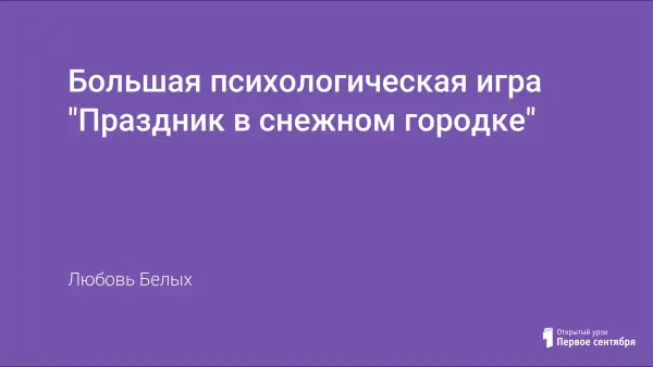 Большая психологическая игра "Праздник в снежном городке" - проектная игра. Проектные игры направлены на развитие умения строить собственную деятельность, осознавать ее смысл, ценности, ставить цели, совершать последовательные сознательные действия, контролировать и оценивать результат. Игры развивают коммуникативные навыки, учат налаживать деловое сотрудничество со сверстниками и взрослыми. Игру "Праздник в снежном городке" можно провести в два этапа: 1) теоретический - проведение игры и создание макета, 2) практический - строительство снежного городка и проведение праздника, что может способствовать благоприятному психологическому климату в коллективе.