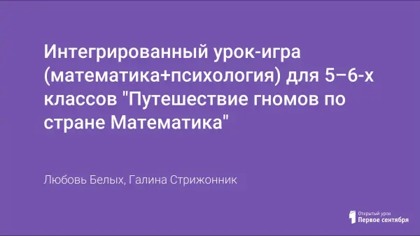 Интегрированный урок-игра (математика+психология) для 5–6-х классов "Путешествие гномов по стране Математика"