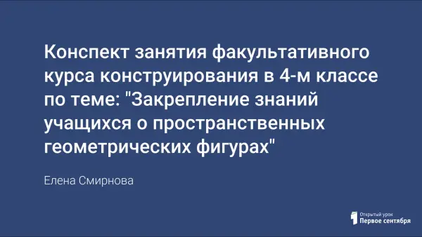 В конспекте занятия по теме "Закрепление знаний учащихся о пространственных геометрических фигурах" раскрываются формы и методы работы. На занятии формируются понятие и представления о пространственных геометрических фигурах - геометрических телах, развивается умение сравнивать, анализировать, обобщать, делать выводы. Прививается интерес к науке геометрии. Дети демонстрируют знания, умения и навыки, полученные на занятиях курса.Теоретические знания применяют в практической работе.