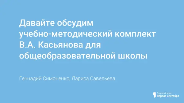 Давайте обсудим учебно-методический комплект В.А. Касьянова для общеобразовательной школы