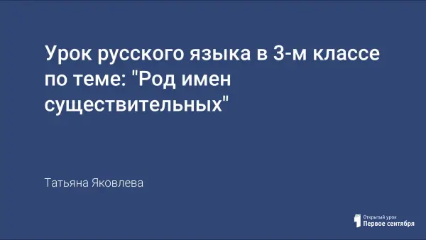 Данный урок является первым при изучении темы. Дети знакомятся с родом имен существительных, отрабатывают прием определения рода существительных. Система упражнений способствует развитию мышления, орфографической зоркости.