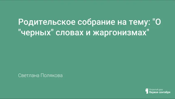 Всё чаще и чаще в школьных коридорах и классах, на улице и в подъездах звучит сленг или даже откровенная матерщина. Откуда в красивом, богатом и певучем русском языке появилось это явление, почему оно так живуче и как с ним бороться? Начать битву за чистоту языка предлагаю с родительского собрания.