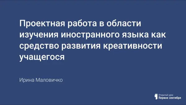 Проектная работа в области изучения иностранного языка как средство развития креативности учащихся. Статья рассказывает об опыте работы с проектной методикой и знакомит с примерами некоторых работ детей.