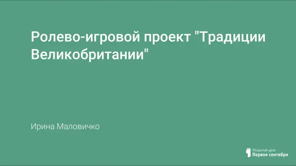 Ролево-игровой проект «Традиции Великобритании» представляет из себя внеклассное мероприятие по английскому языку для 6-х классов. Проект предваряют радиолинейки, которые дают возможность детям возможность получить опыт публичных выступлений. В проекте принимают участие не только вся параллель 6-х классов, но и родители.