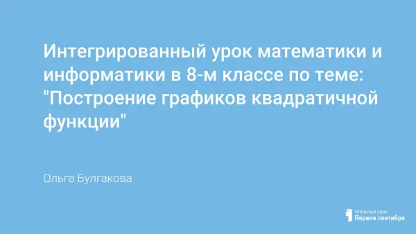 Представлен интегрированный урок математики и информатики по теме "Построение графиков квадратичной функции" в 8 классе. Урок проходит в компьютерном классе (12 компьютеров).