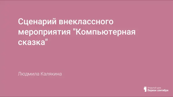Это внеклассное мероприятие можно провести в рамках предметной недели информатики в школе. Учащиеся с удовольствием примут участие в театрализованном представлении на тему, которая им близка. В приложении к сценарию этой сказки есть музыкальные фрагменты и фонограммы, которыми можно украсить это мероприятие.