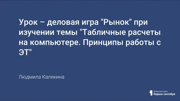 В работе представлен конспект урока, на котором учитель ставит перед собой и учениками следующие цели: смоделировать реальную рыночную ситуацию с помощью проведения деловой игры "Рынок"; продемонстрировать учащимся механизмы формирования цен на товары; воспитывать предпринимательские качества личности; провести обработку результатов игры с помощью электронных таблиц.
